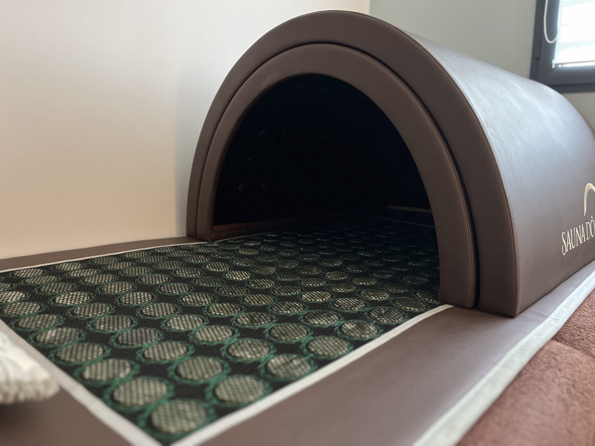 Le sauna japonais par infrathérapie est un soin de bien-être profond et doux, qui associe la chaleur des infrarouges lointains à l’énergie de 300 pierres naturelles : jade, tourmaline et germanium.